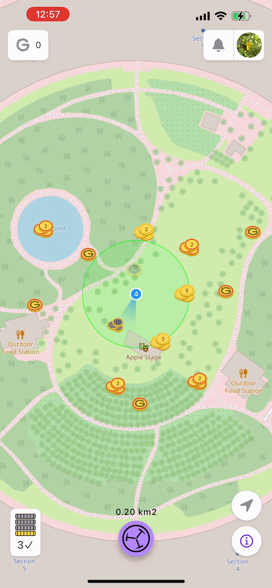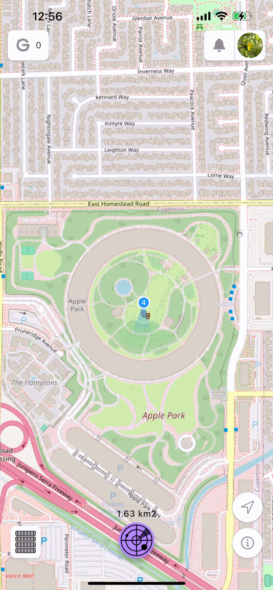 The radar allows you to scan a visible map area (up to 1 km²). You can activate it by tapping the purple button anywhere – in your neighborhood.