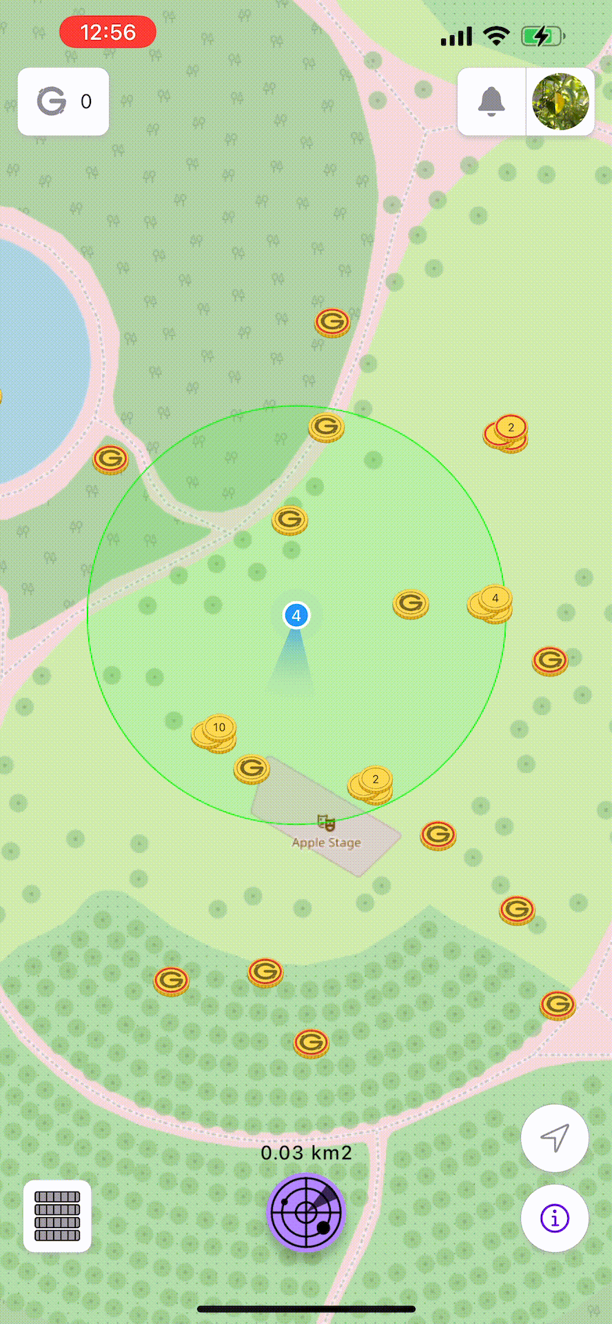 2️⃣ Activate the radar – Find coins around you or in any other location on the map.